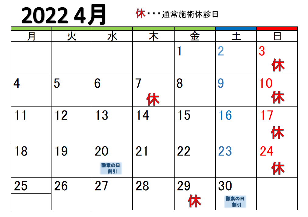 4月の予定と今日のワンポイント